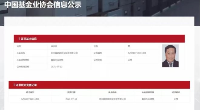 那么,宗慶后將會徹底退休嗎?今年7月,娃哈哈創(chuàng)投正式完成基金管理人備案登記,而法定代表人正是宗慶后本人。更令人驚訝的是,已經(jīng)高達76歲的宗慶后也在同一時間拿下了基金資格從業(yè)證書。如無意外,他的身影之后會更加密集地出現(xiàn)在創(chuàng)投圈。