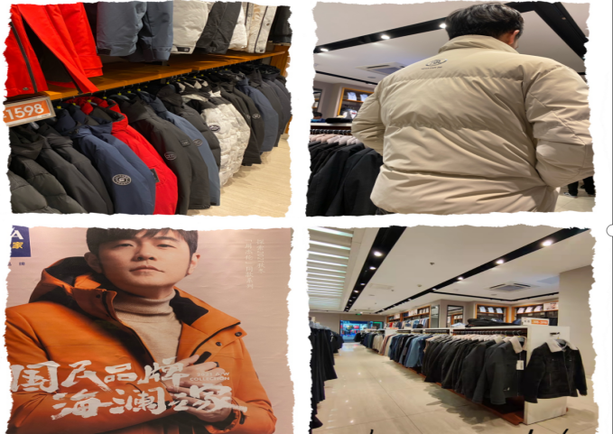 150平米左右的店內(nèi)大概只有兩到三對客人在進行選購。在說明了想購買羽絨服的意圖后,店員為我推薦了品牌銷量最高的一款,售價約700元。