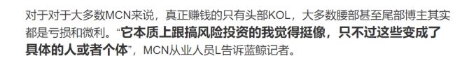 正如媒體所說,在多數(shù)MCN看來,真正盈利的是頭部博主,而腰部和尾部的博主多為虧損或微利。