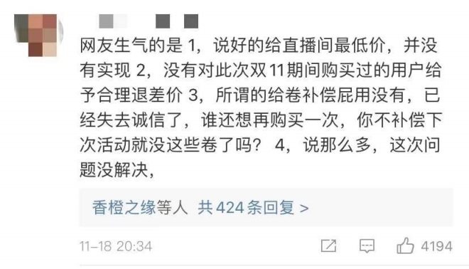 11月16日,許多消費者發(fā)現(xiàn),在李佳琦、薇婭直播間購買的預售歐萊雅安瓶面膜,比雙十一的現(xiàn)貨還貴,與此前歐萊雅官方宣傳的“全網(wǎng)最低價”不符。一時間,#歐萊雅被指虛假宣傳#、#歐萊雅安瓶面膜退差價#的話題沖上微博熱搜。