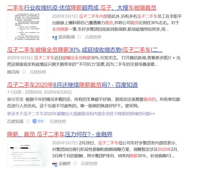 作為“最后幸存者”的瓜子,2020年被曝出大規(guī)模裁員和內(nèi)部全員處于降薪的困境。截止今年最新一筆融資前,還被曝出旗下全國購業(yè)務(wù)門店大規(guī)模關(guān)店和拖欠租金等消息。