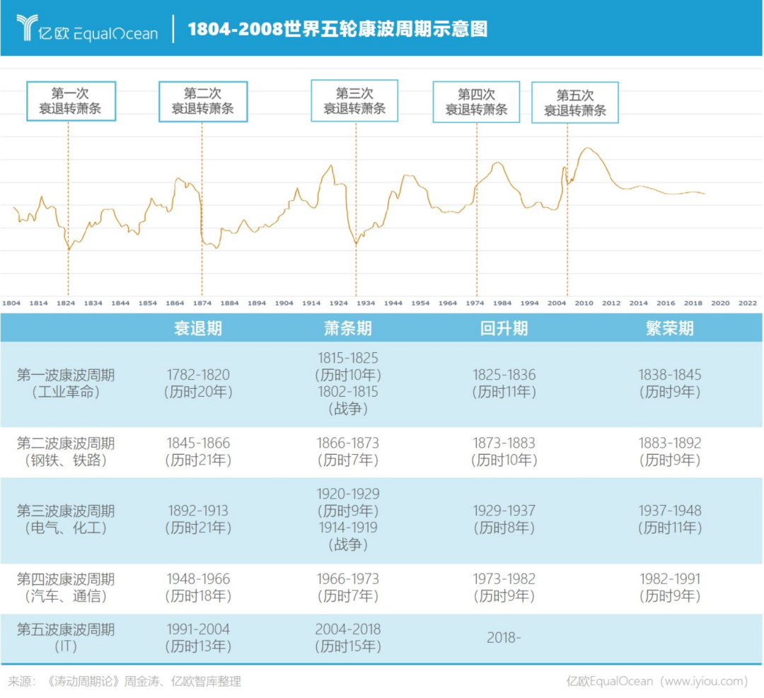 結(jié)合前中信建投首席經(jīng)濟(jì)學(xué)家周金濤關(guān)于經(jīng)濟(jì)周期的預(yù)測(cè)來看,2020年疫情的沖擊下或延長(zhǎng)康波蕭條的周期,原本的短周期弱復(fù)蘇極有可能演化為進(jìn)一步衰退。同時(shí)相關(guān)研究顯示,蕭條期預(yù)計(jì)會(huì)一直持續(xù)到2025年左右。