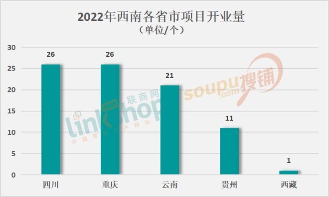 據(jù)聯(lián)商網(wǎng)零售研究中心統(tǒng)計,川、渝、黔、云、藏西南五省市計劃2022年開業(yè)的商業(yè)項目共計85個(不含專業(yè)市場、酒店及寫字樓,商業(yè)建筑面積≥2萬方,且不含未披露或開業(yè)時間不詳?shù)捻椖浚,新增商業(yè)建筑面積超800萬方,平均單體建筑面積約10萬方。