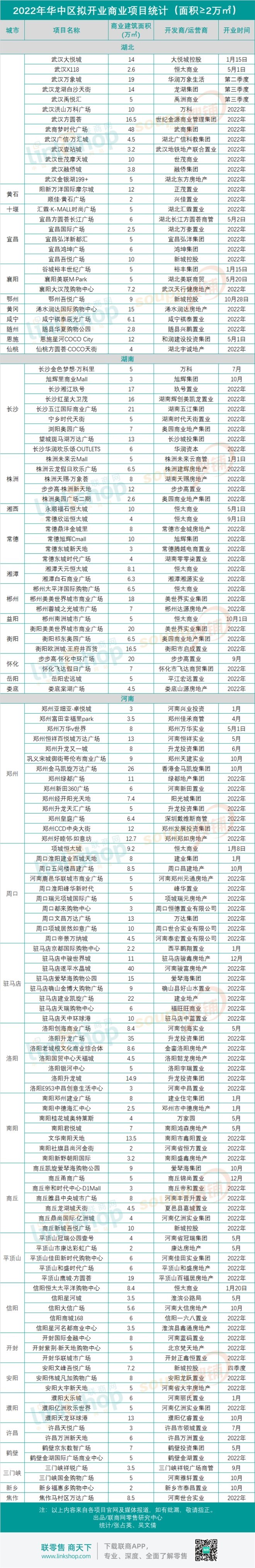 附:2022年華中擬開業(yè)商業(yè)項目統(tǒng)計表