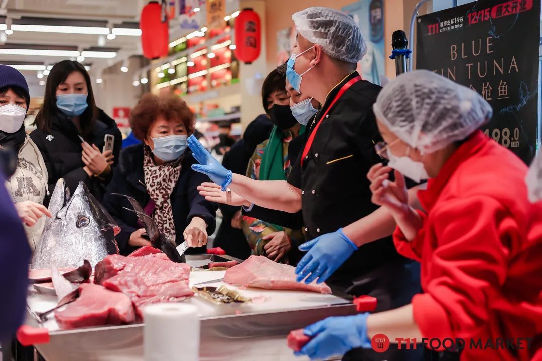 以T11重點營運品類之一的肉類為例,其進(jìn)口牛肉的占比超過了50%。T11從澳洲等TOP級肉禽產(chǎn)區(qū),澳洲和牛、黑安格斯、美國牛肉等優(yōu)質(zhì)食材產(chǎn)地直采,冰鮮原切的和牛更涵蓋M5-M9+級別。水產(chǎn)品類中,海洋蛋白商品的比重超過90%。烘焙品類,如面包蛋糕,從面粉、奶油到糖,都選用最優(yōu)質(zhì)的食材,而且堅持手工現(xiàn)場制作。以T11的法棍為例,使用傳統(tǒng)工藝并配上法國王后粉,經(jīng)過國際專業(yè)烤箱烘焙制作而成,它也因此創(chuàng)造了日銷300根的記錄。