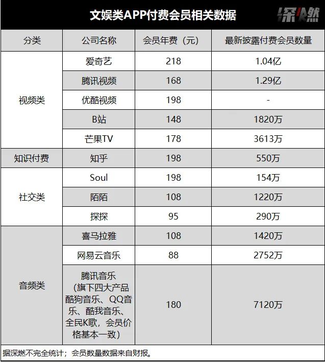 把會(huì)員收入當(dāng)作重要營收來源,以長視頻類APP愛優(yōu)騰芒為首。