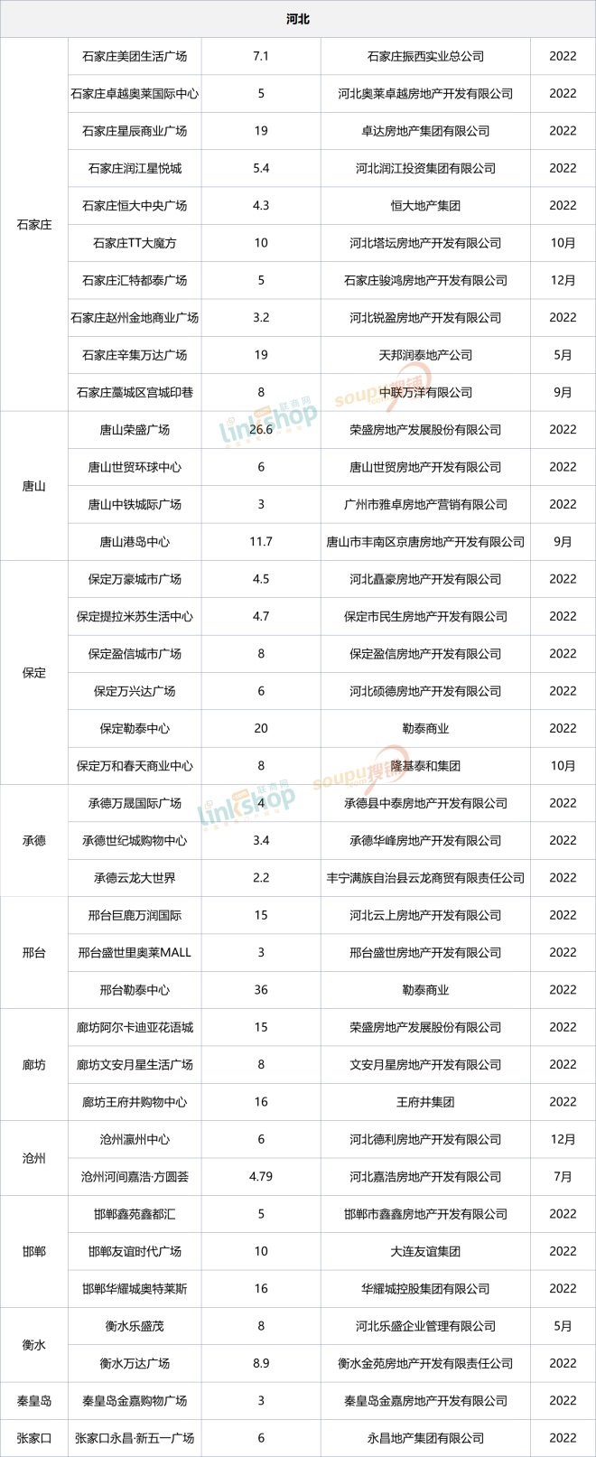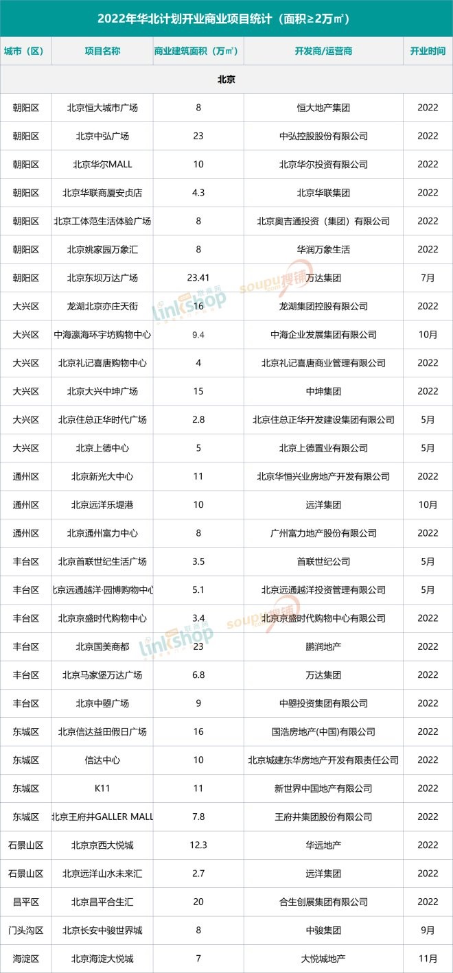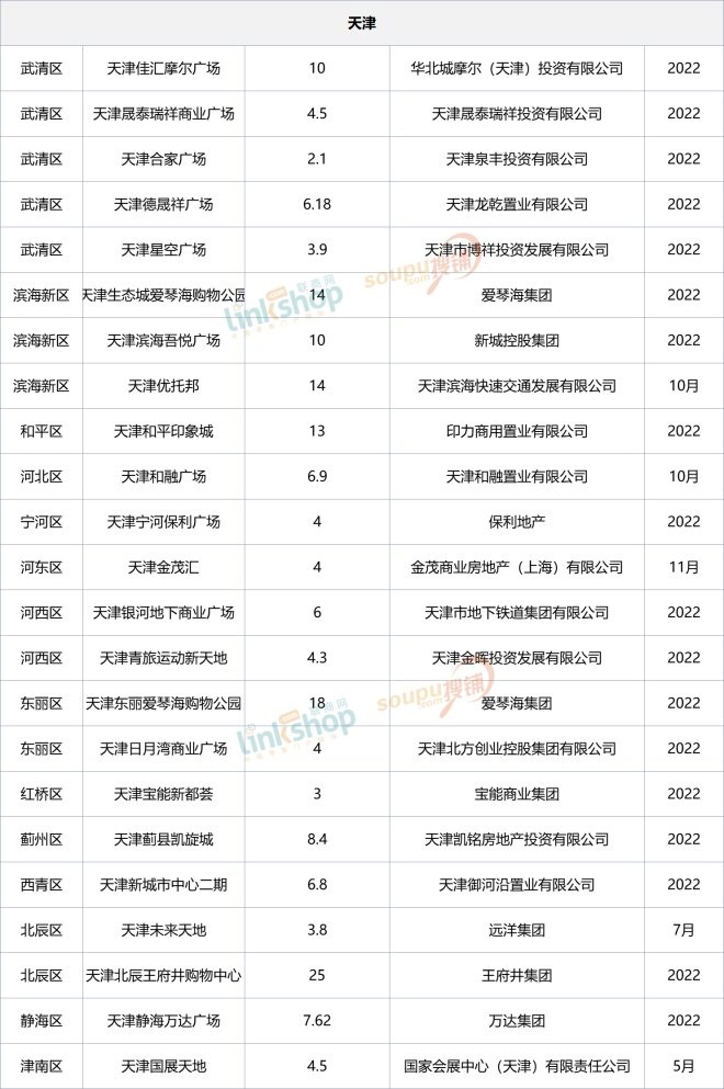 2022華北擬開購物中心名單曝光:113個,京津冀領跑