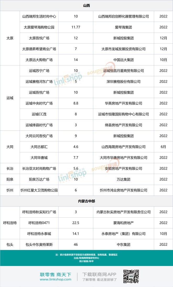 附:2022年華北地區(qū)擬開業(yè)商業(yè)項目統(tǒng)計表