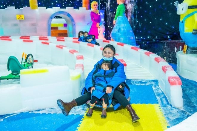 顧客體驗(yàn)安慶吾悅廣場百米冰雪滑梯
