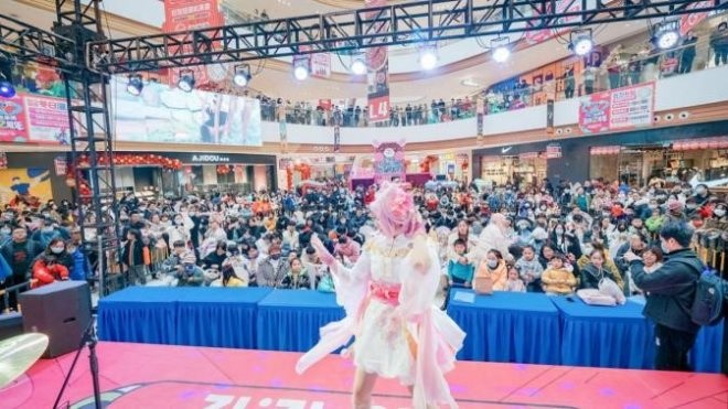 有別于安慶的北國風(fēng)光,蚌埠吾悅廣場聯(lián)合BiliBili共同打造“BCG冬日漫展”,邀約抖音百萬網(wǎng)紅黃嗲嗲、天才親臨現(xiàn)場,全城上千名COSER齊聚。正版手辦展、宅舞大賽、漫展小劇場等系列活動,讓蚌埠的年輕人盡情地享受了一場動漫界的饕餮盛宴。
