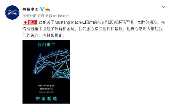 言下之意就是“我們是故意寫錯的”,再次引起吐槽;蛟S是承受了大量網(wǎng)友吐槽的壓力,福特隨后將這兩條微博都刪除了。并在官方微博發(fā)布了道歉信。福特本意應該是想“劍走偏鋒”,制造一個社交話題討論,推動新品曝光,但在過年這件事上輕視了中國用戶的大眾情感。