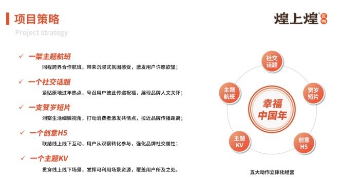 通過吉利話+品牌價(jià)值傳導(dǎo)+消費(fèi)者個(gè)性化表達(dá)的內(nèi)容組合策略,打出“新年更要煌上煌”的幸福感召,以聯(lián)手同程打造新年主題航班、賀歲溫情短片、創(chuàng)意H5打通線上線下互動(dòng)、主題KV覆蓋全國(guó)近5000家終端門店受眾等組合拳,將品牌溫度融入用戶情感需求之中,鼓勵(lì)大眾期待光明輝煌的新一年。