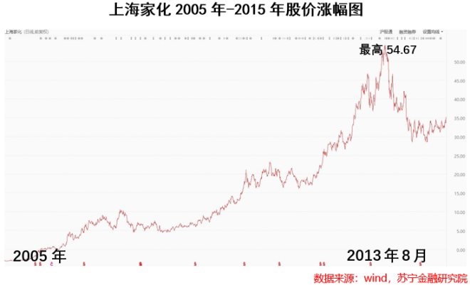 在加入WTO后,出口貿(mào)易的發(fā)展讓國(guó)內(nèi)消費(fèi)行業(yè)迎來(lái)了大爆發(fā)。經(jīng)濟(jì)發(fā)展帶來(lái)了消費(fèi)的升級(jí),人們特別是女人對(duì)于化妝、護(hù)膚的需求大幅增長(zhǎng)。上海家化作為國(guó)貨龍頭,也迎來(lái)了股價(jià)的春天。2005年-2013年間,上海家化成為資本市場(chǎng)公認(rèn)的超級(jí)大白馬,期間股價(jià)漲幅超過50倍。