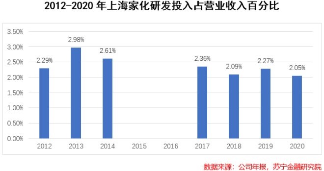 為了彌補(bǔ)以前渠道經(jīng)營(yíng)不善欠下的賬,管理層另辟蹊徑將渠道擴(kuò)大到母嬰專營(yíng)店、化妝品專營(yíng)店,甚至是農(nóng)村直銷車覆蓋的鄉(xiāng)村網(wǎng)點(diǎn),重構(gòu)了電商部門。除此之外,上海家化在研發(fā)方面的投入逐漸增加,研發(fā)費(fèi)用率達(dá)到2.36%,重新追回同行3%的水平。