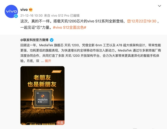 先鋒影像旗艦vivo S12系列將于12月22日正式發(fā)布。它究竟還會給我們帶來哪些驚喜,歡迎持續(xù)關注。