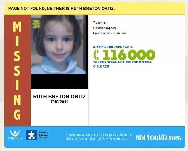 而這個(gè)概念最早來(lái)源于歐洲“NotFoundProject” 項(xiàng)目,由“歐洲失蹤兒童行為組織”和“歐洲尋找失蹤人口聯(lián)盟”等公益組織發(fā)起,旨在利用閑置網(wǎng)絡(luò)空間幫助尋回失蹤兒童。