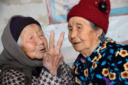 老人家耳背,相互貼著耳朵說(shuō)話(huà),邊摩挲著對(duì)方的背,邊抹著眼淚。