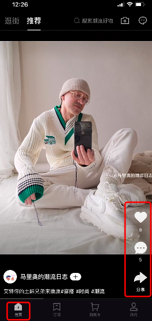 作為一款主打時尚潮品的電商APP,抖音盒子下方導(dǎo)航欄分別為“首頁”、“訂閱”、“購物車”和“我的”按鈕。與抖音類似,依舊看重生態(tài)布局,通過內(nèi)容奠定了其宣傳的“面向年輕人”、“潮流時尚”平臺基調(diào),用戶可刷到各種關(guān)于穿搭、潮品的視頻,并支持用戶上傳視頻、開啟直播。