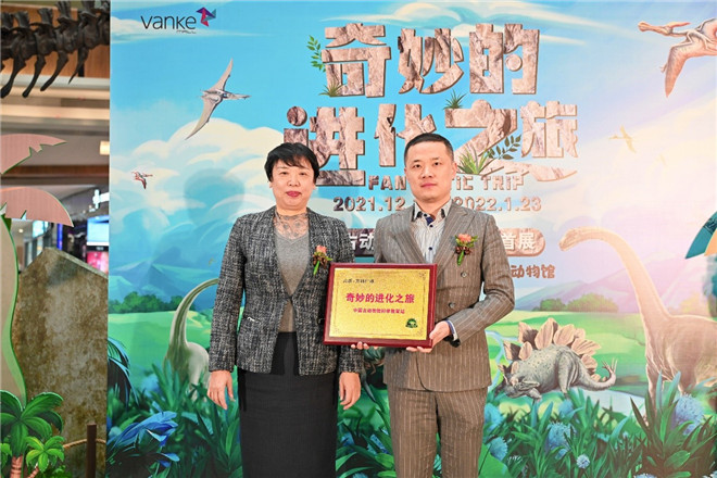 中國古動物館副館長張平女士在致辭中表示,從古至今,“我們從哪兒來?我們往哪里去?”似乎一直就是一個永恒的問題,也是一個科學問題。千百年來,人類從未停止過思考和探索的腳步,苦苦追尋其中的奧秘與真諦。經(jīng)過無數(shù)科學家的努力,我們用化石講述一個接一個的生命演化的“中國故事”。中國古動物館作為我國唯一國字號研究院級博物館肩負著對古生物知識科學普及的社會職責,創(chuàng)新而得的《奇妙的進化之旅》特展與城市具有代表性的商業(yè)進行合作,通過更具娛樂性、體驗性的方式在與大眾生活最緊密的商場進行傳播,能達到最佳的效果呈現(xiàn)。此次與鄭州高新·萬科廣場的合作,雙方在科普教育理念、內(nèi)容與形式、價值導向與目的上不謀而合,共同引領(lǐng)愛好者踏上對古生物的探索之旅。同時張平女士向鄭州高新·萬科廣場授予“中國古動物館科普教育站”的榮譽稱號。