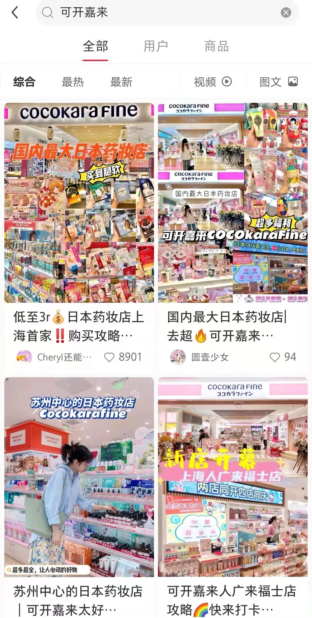 當前,在小紅書平臺,搜索“可開嘉來”,相關筆記達1萬+篇。內容主要以KOL探店類為主,其中,“國內最大日本藥妝店”字眼高頻出現(xiàn)。從發(fā)布時間來看,則集中在去年和今年。此外,在大眾點評上,可開嘉來美羅城店相關的精選評價也有一千多條。