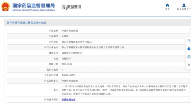▍截自國家藥監(jiān)局化妝品查詢官方平臺(tái)
