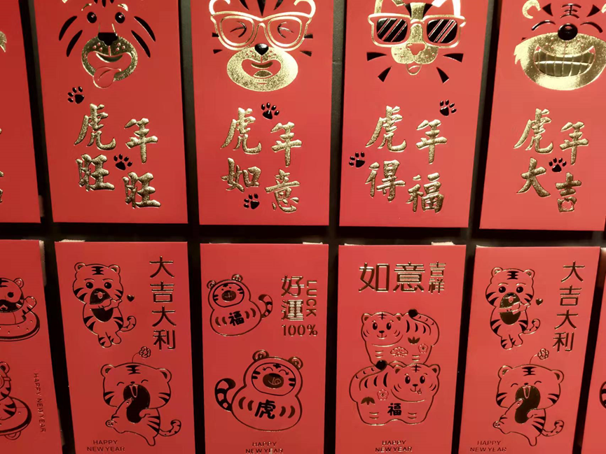 不同尺寸、不同花樣的紅色紙扇花,密密麻麻地排布在店鋪墻壁上。除了年年有余、如意安康等吉祥話,虎年的屬相圖案也早早出現(xiàn)在商城,對于義烏而言,雙十一開始于十月,而新年開始于前一年的下半年。