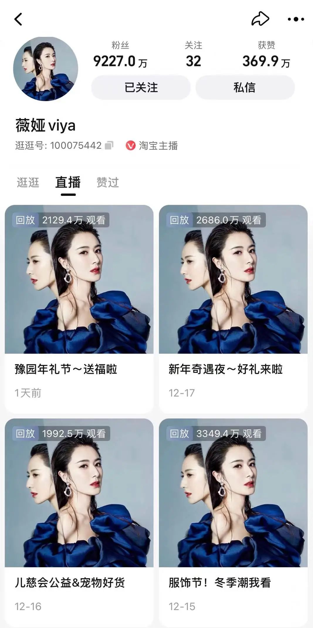 薇婭淘寶直播賬號,目前已被凍結(jié) 來源 / 淘寶