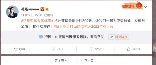 目前,薇婭身上除了公司與品牌方之間的多項合作之外,還被授予多地的形象或宣傳大使。今年3月份,杭州亞運會官宣薇婭為2022年杭州亞運會代表人,如今相關微博已被刪除。