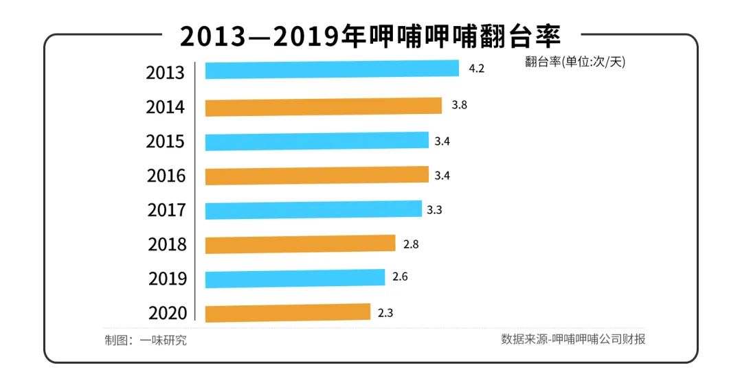 不僅如此,呷哺呷哺的翻臺(tái)率也在逐年降低。財(cái)報(bào)數(shù)據(jù)顯示,呷哺呷哺翻臺(tái)率從2013年的4.2倍一路降至2020年的2.3倍。