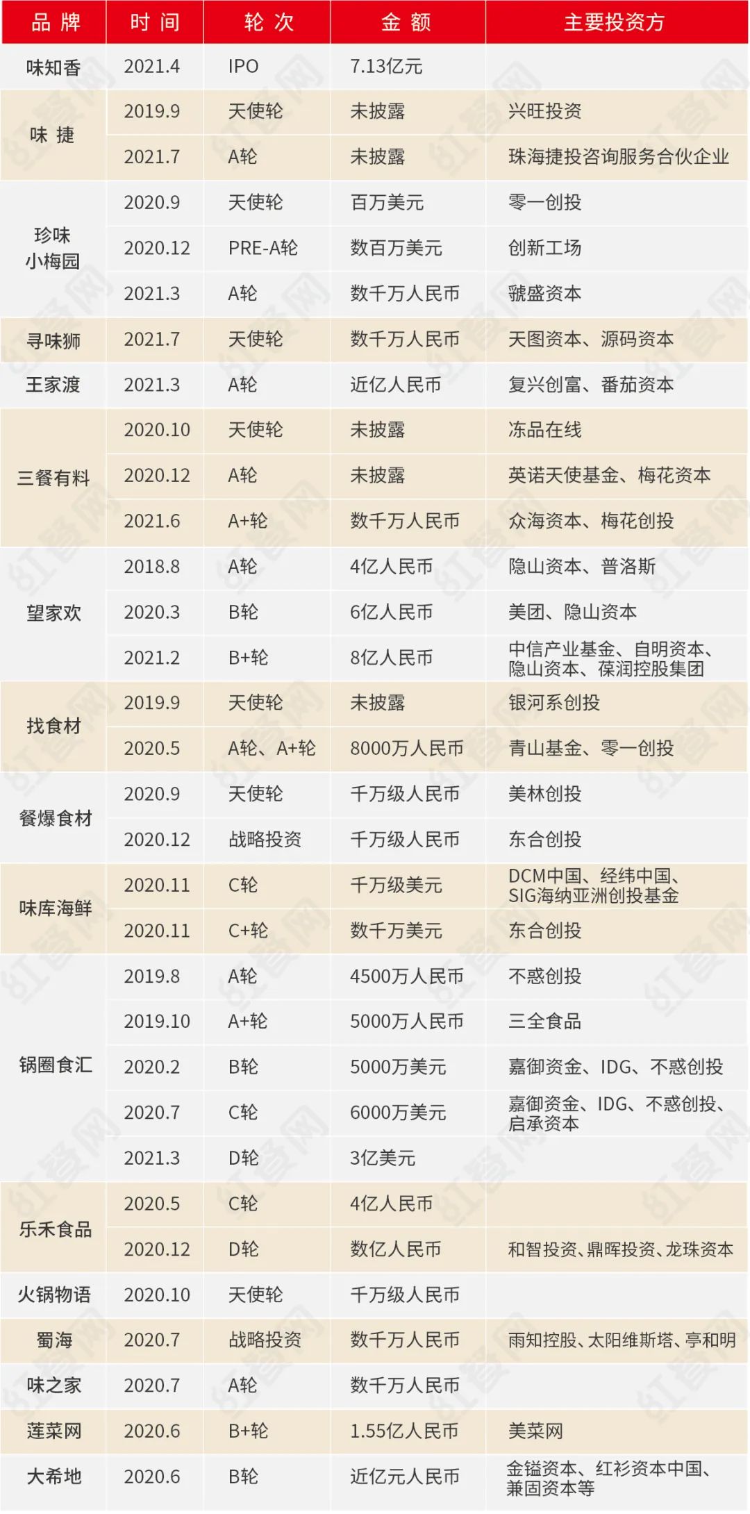 2020年以來,諸多預(yù)制菜相關(guān)企業(yè)獲得融資,投資方不乏諸多大牌,而且金額多在千萬以上,上億的也不在少數(shù)。