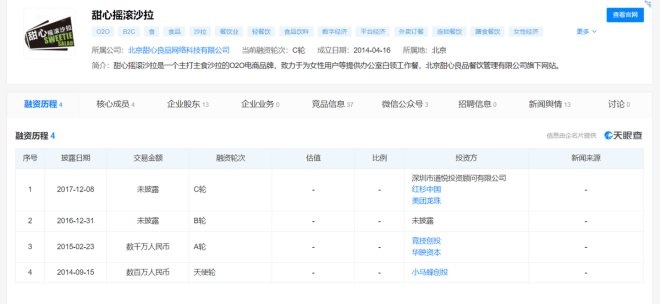 據(jù)悉,2016年,米有沙拉曾獲真格基金的800萬元的天使輪融資;2015年,甜心搖滾沙拉獲得華映資本在內(nèi)的A輪融資,其后兩年分別完成了B輪、C輪融資,融資金額接近億元。據(jù)公開數(shù)據(jù)統(tǒng)計(jì),在2015年至2018年期間,至少有10億資本涌入輕食市場。