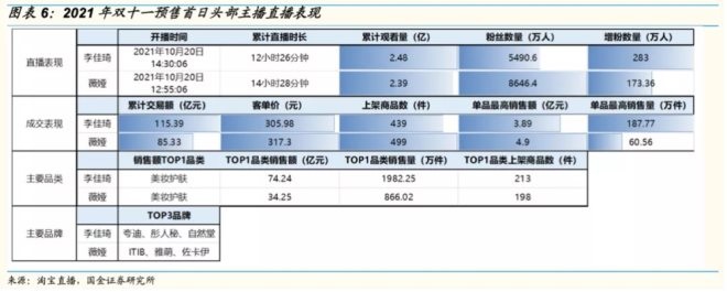 2021年雙11期間,根據(jù)淘寶主播銷售榜監(jiān)測數(shù)據(jù)顯示,「薇婭直播間」雙11預(yù)售啟動(dòng)夜(10月20日)累計(jì)交易額為85.33億元,累計(jì)觀看量2.39億,僅次于李佳琦。