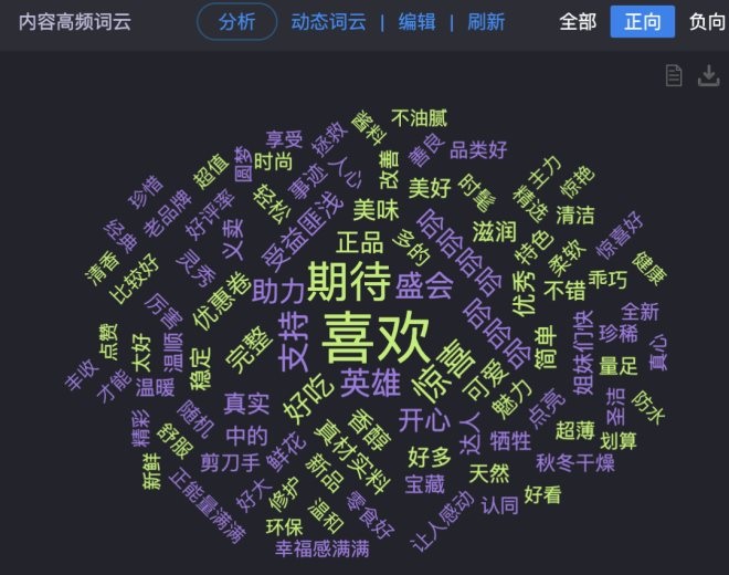 3、薇婭的正向高頻詞云,主要是由直播活動(dòng)而帶來的選品贊譽(yù)和產(chǎn)品討論。比如「精選」、「真材實(shí)料」、「品類好」、「時(shí)髦」等。