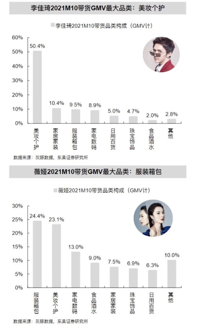 1、根據(jù)東吳證券研究所報(bào)告,薇婭M10帶貨GMV品類分布主要集中在服裝箱包、美妝個(gè)護(hù)、家電數(shù)碼和食品酒水,其中最大品類為服裝箱包,占比將近四分之一。