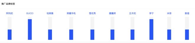 2、從推廣品牌角度來看,根據(jù)時(shí)趣洞察引擎檢索分析,薇婭推廣品牌標(biāo)簽排名靠前的主要有阿瑪尼、Gucci、珀萊雅、榮耀手機(jī)、雪花秀、膳魔師、五月花、李寧等。