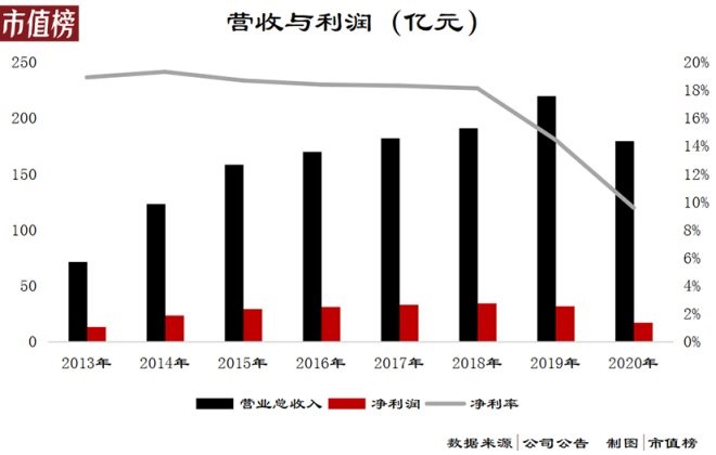 結(jié)果就是費用激增,2020年相較2014年,銷售費用增加142.5%,管理費用增加60.2%。銷售費用增長率和管理費用增長率始終大于營收增長率,最終導(dǎo)致凈利率的下降。