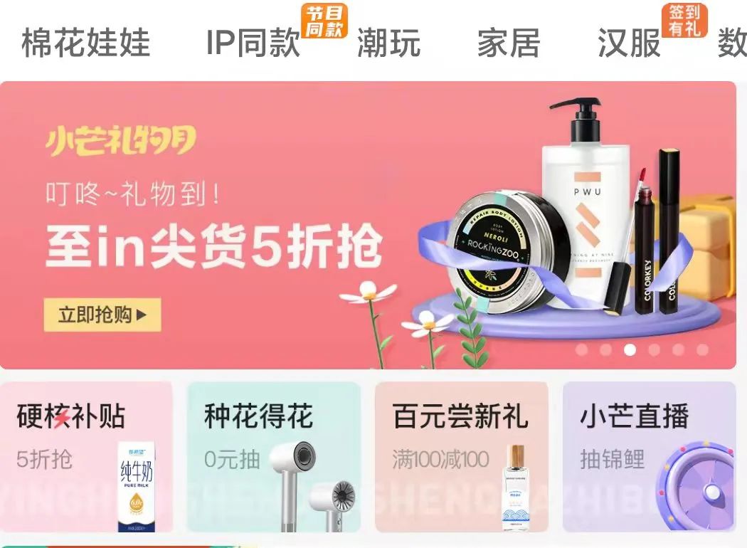打開小芒APP,在界面上方的品類欄里,你不僅能看到服飾、視頻、美妝等大品類方向,還能看到棉花娃娃、IP同款、潮玩、漢服等細(xì)分內(nèi)容,為不同的圈層文化提供專屬領(lǐng)域,無論你是“追星族”還是漢服愛好者都能在小芒APP最快、最便捷地找到你想要的商品,為更多的小眾領(lǐng)域提供消費(fèi)的可能。