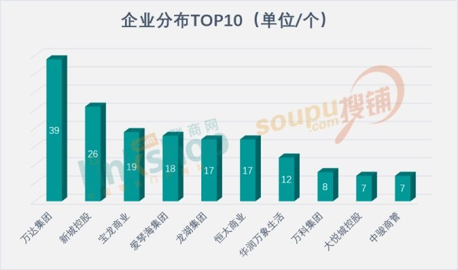 其中,開業(yè)數(shù)量在前十的企業(yè)分別是萬達集團、新城控股、寶龍商業(yè)、愛琴海集團、龍湖集團、恒太商業(yè)、華潤萬象生活、萬科集團、大悅城控股、中駿商管。規(guī);l(fā)展雖然與企業(yè)當下的整體戰(zhàn)略有關(guān),但一定程度上也反映了企業(yè)的開發(fā)能力和運營實力,因此對市場投資價值的導(dǎo)向也有一定引導(dǎo)作用。