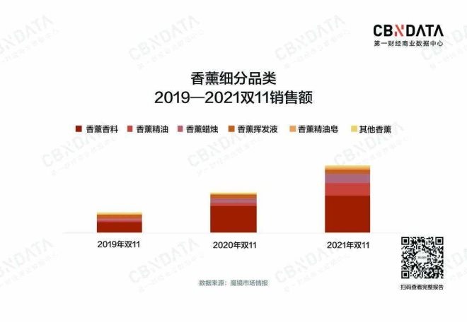 結(jié)合對(duì)于近3年雙11香薰市場(chǎng)銷售表現(xiàn)的觀察,整個(gè)香薰市場(chǎng)的增長主要是由香薰精油和香薰蠟燭兩大品類的增長驅(qū)動(dòng),二者今年雙11銷售額同比增幅分別高達(dá)941.6%和180.7%,香薰精油的市場(chǎng)份額占比同比增長17.3個(gè)百分比。