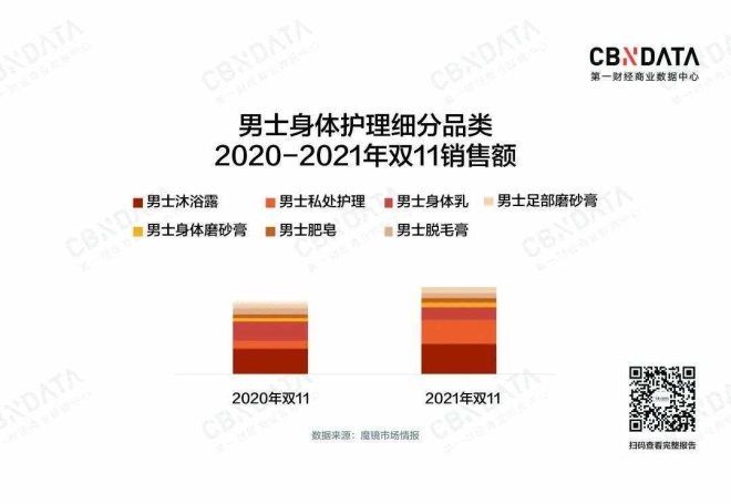 除了在頭部“捯飭”,男士對(duì)于身體護(hù)理的關(guān)注也在提升,男性私處護(hù)理、身體磨砂膏同比增幅分別高達(dá)218%和750%,雖然基數(shù)占比不大,但增速迅猛。