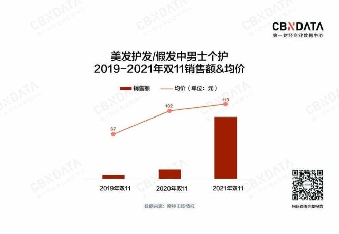 2021年,天貓將男士護(hù)理升級(jí)成為獨(dú)立運(yùn)營的一級(jí)類目,與美妝平級(jí),這一方面說明男士護(hù)理相關(guān)類目在近兩年里增速迅猛,一方面也預(yù)示著這一品類預(yù)計(jì)未來增速會(huì)持續(xù)迅猛。據(jù)天眼新聞報(bào)道,在2021年雙11開賣首小時(shí)內(nèi),男士護(hù)理中的頭部造型產(chǎn)品銷售額超去年全天2倍,主要包括發(fā)蠟、洗發(fā)水、護(hù)發(fā)素、頭發(fā)噴霧等;在洗護(hù)發(fā)大類下,男士個(gè)人護(hù)理同比增幅超過9倍。