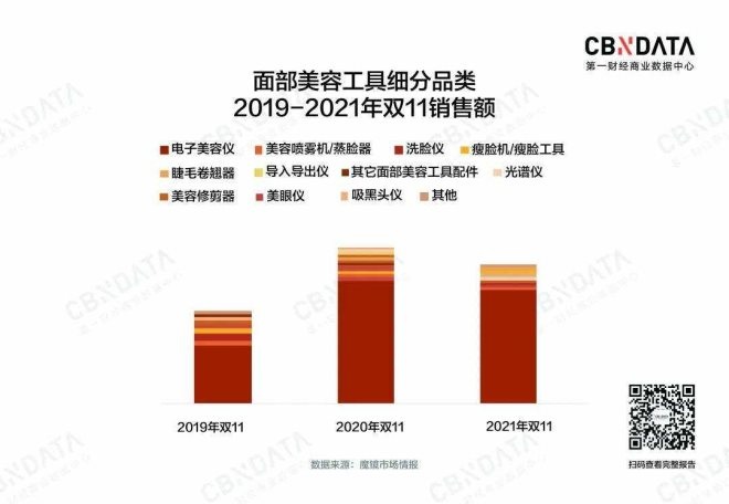 以占據(jù)整個(gè)大類半壁江山的面部美容工具為例,與19年雙11相比,20年開始便陸續(xù)新增了光譜儀、導(dǎo)入導(dǎo)出儀、吸黑頭器等5個(gè)新的細(xì)分品類,曾經(jīng)排名前列的洗臉儀和瘦臉機(jī)連續(xù)兩年銷售額縮水,前者近兩年的復(fù)合增長率為-54.7%,不得不說,時(shí)間才是檢驗(yàn)真?zhèn)涡枨蟮淖罴逊绞健?/p>