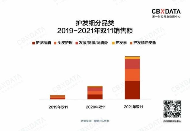 與此同時(shí),消費(fèi)者在頭發(fā)上下的功夫也越來越多,我們可以看到僅護(hù)發(fā)這一個(gè)細(xì)分類目下,就分出護(hù)發(fā)精油、頭皮護(hù)理、發(fā)膜/倒膜/焗油膏、護(hù)發(fā)素、護(hù)發(fā)精油安瓶這些更細(xì)分的品類,其中護(hù)發(fā)精油和頭皮護(hù)理的雙11同比增速分別高達(dá)267.8%和251.1%,可以說在今年雙11迎來了爆發(fā)式的增長。