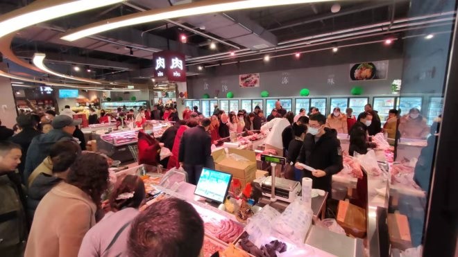 據(jù)悉,新店風(fēng)格構(gòu)思來源清明上河圖對于中國傳統(tǒng)市井生活場景的描畫。門店圍繞“一日三餐”和“居家生活”進(jìn)行布局,中心區(qū)域是代表“一日三餐”的生鮮,周邊圍繞著家居、食品等品類。門店采用大量弧形、島柜、高低錯(cuò)落的設(shè)計(jì)與組合,視野通透,一覽無余。通道寬敞可容多輛購物車同時(shí)通過。營造出濃郁的“市集”氛圍。