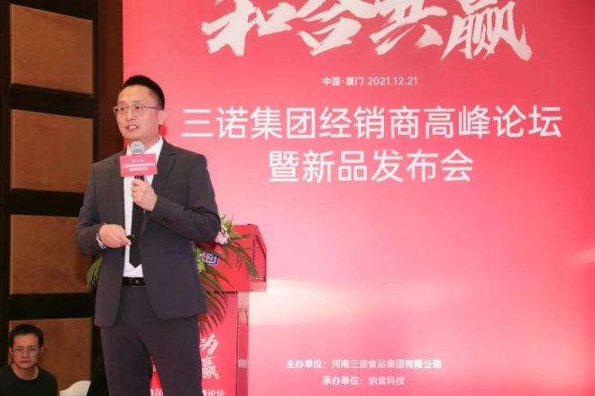 大會上,董事長王磊回顧一年來市場中的機(jī)遇與挑戰(zhàn),對2021年三諾人的辛苦付出和取得成績給予了高度認(rèn)可和贊揚(yáng),并對企業(yè)未來發(fā)展提出新目標(biāo)新要求。納食科技董事長CEO李研對企業(yè)未來數(shù)字化招商和運(yùn)營做了深入分享。三諾營銷總監(jiān)李杰祥總結(jié)2021成果與經(jīng)驗(yàn),并分享2022年三諾公司市場戰(zhàn)略規(guī)劃及部署。