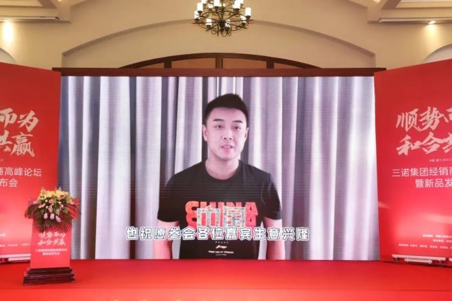 三諾集團(tuán)品牌代言人影視名星張一山和乒乓球奧運(yùn)冠軍王皓分別向三諾人送來祝福和對企業(yè)的期許。