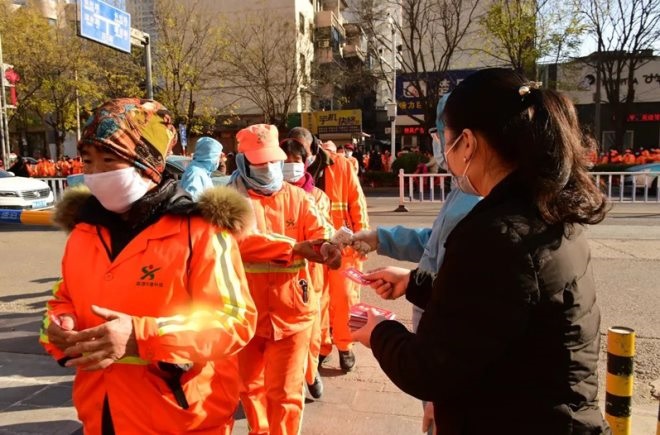 為保證疫情期間環(huán)衛(wèi)工人和所有工作人員的安全, 河南一峰旗下門店在活動(dòng)入口處專門設(shè)置了防疫監(jiān)測點(diǎn)。同時(shí),安排專人對(duì)活動(dòng)現(xiàn)場進(jìn)行全面消殺,為做到防疫要求,對(duì)每一位入場的環(huán)衛(wèi)工人都要佩戴口罩、測溫和消毒,并安排安保人員在現(xiàn)場維持秩序,保證了現(xiàn)場活動(dòng)安全有序開展。