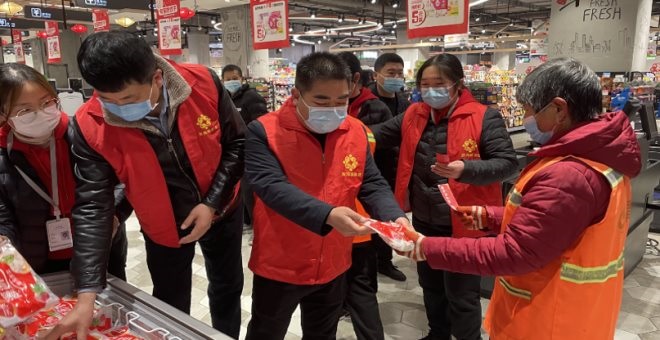 扶溝區(qū)域雖然剛剛經(jīng)歷過一場局部疫情,但隔離病毒不隔離愛,扶溝一峰在確保防疫安全的前提下,響應(yīng)政府要求,為避免長期聚眾,以“愛的禮物”為主題,通過為全城環(huán)衛(wèi)工人發(fā)放餃子券,到一峰生活超市領(lǐng)取速凍餃子的方式,為全城環(huán)衛(wèi)工人送上冬日里的溫暖。