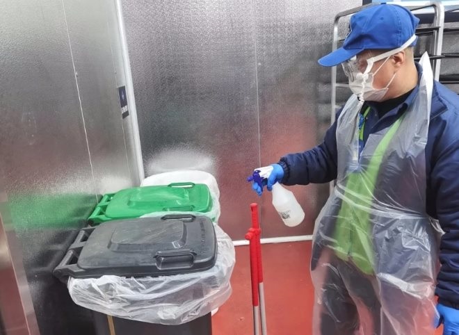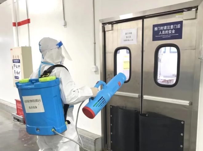 為了加碼對冷藏庫冷凍庫的消毒力度,今年還增加低溫季銨鹽消毒液進(jìn)行消毒,指定用原液噴灑。