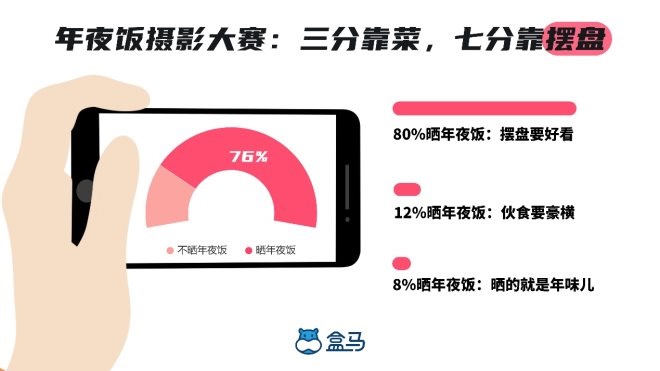 受訪者中有76%的人有在社交網(wǎng)絡曬年夜飯的需求,其中又有80%的受訪者認為年夜飯擺盤好看最重要,這就要求年菜需要有更高的顏值。
